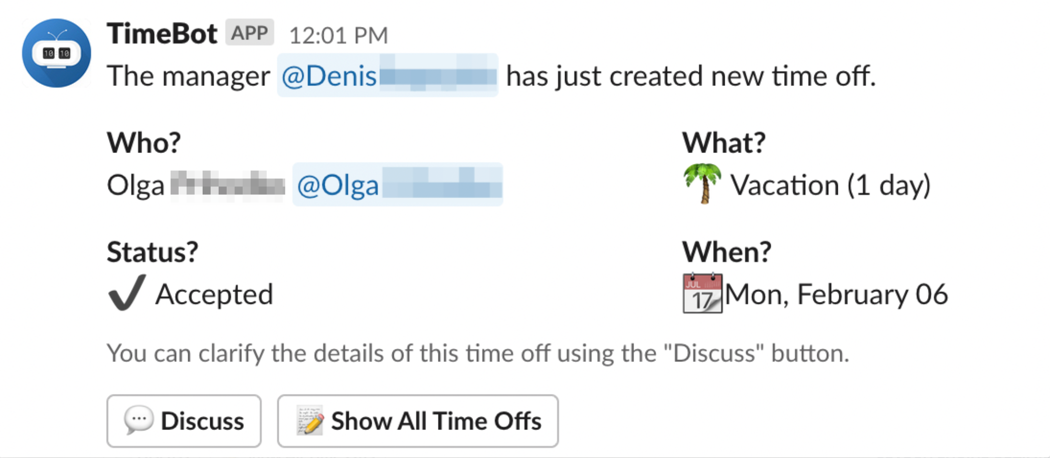 So when a manager approves someone's leave, an HR will get a message as below.